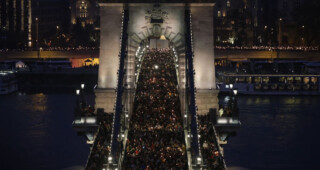 Látványos videón a hatalmas tömeg Magyar Péter tüntetésén, ahogy átsétálnak a Lánchídon