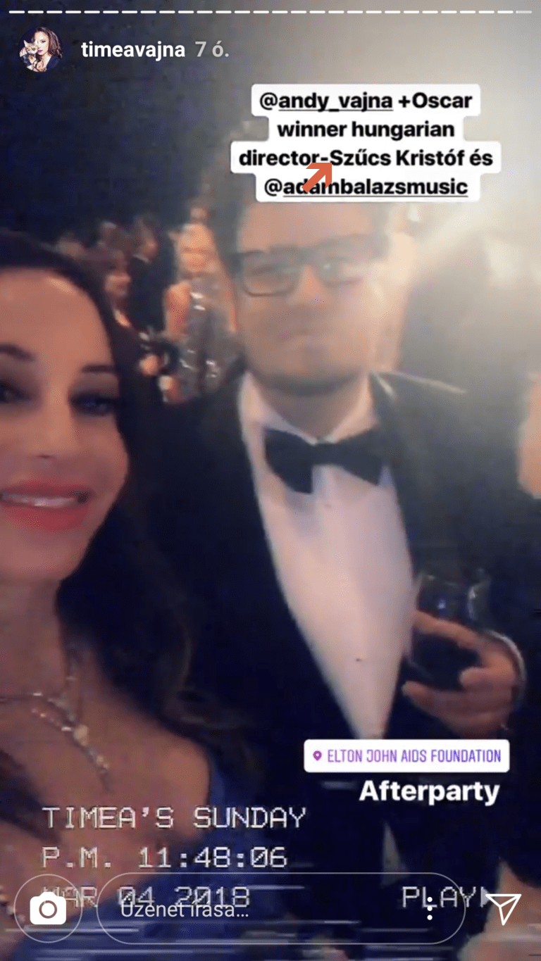 Vajna Tímea több mint húszrészes kép- és videóösszeállítással jelentkezett az Instagramon az Oscar-díj-átadóró. Többek között Deák Kristóffal is készített egy közös felvételt, aki a tavalyi díjátadón a legjobb rövidfilm szobrát nyerte el.