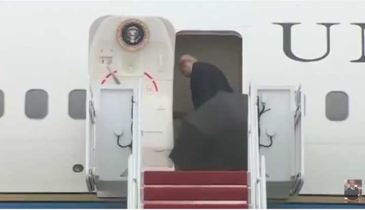 Most, amikor az elnöki különgépére szállt fel, saját magának kellett fognia az esernyőt és mikor fedett helyre ért, nem is tudott mit kezdeni vele, így inkább nemes egyszerűséggel otthagyta az ajtó előtt kinyitva.