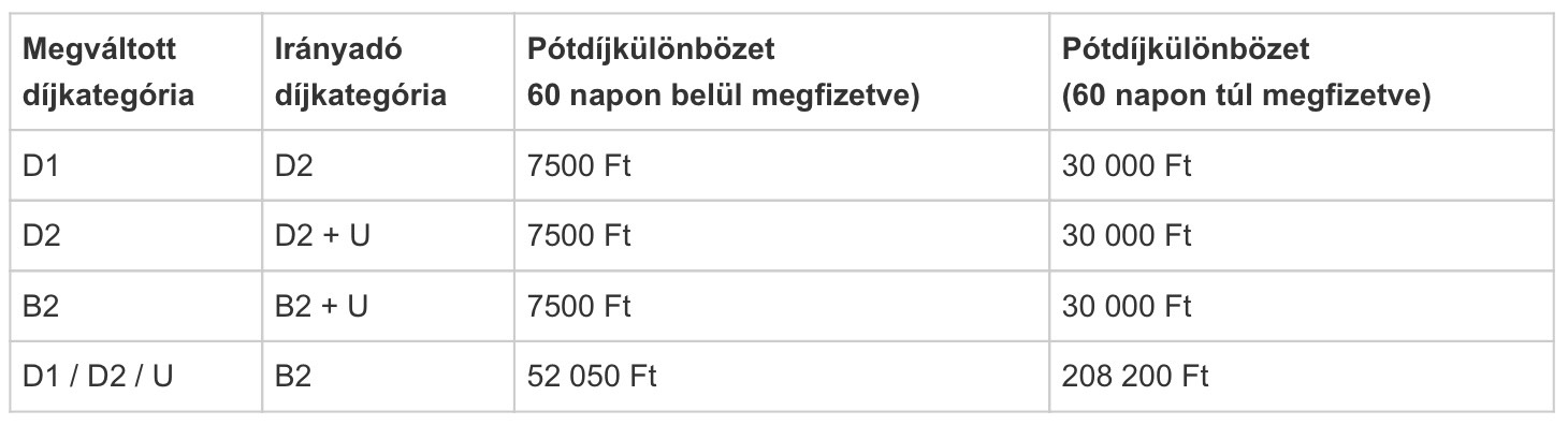 A pótdíj különbözet: