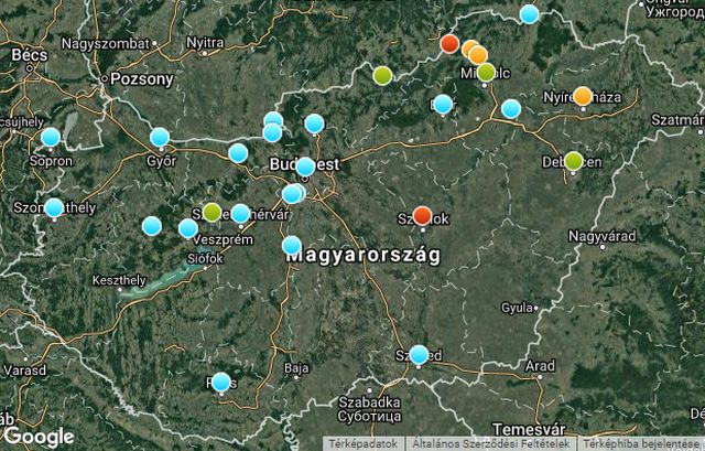 Az OKK térképén a kifogásolt levegőminőséget jelző zöld színnel jelölték Salgótarjánt, Miskolcot, Debrecent, valamint Székesfehérvárt. Másutt – köztük a fővárosban – jelenleg elfogadható a levegő minősége.
