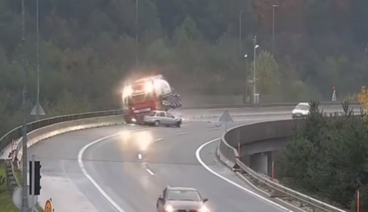 A magyar rendszámú tartályautóba Ljubljanához közel hajtott bele egy Opel. Az Opelt egy 41 éves szlovén férfi vezette, aki elvesztette uralmát járműve fele, és nekiment a magyar kamionosnak egy hídon, ő pedig ennek következtében a szalagkorlátot átszakítva húszméteres mélységbe zuhant. A felvételt itt nézheted meg.