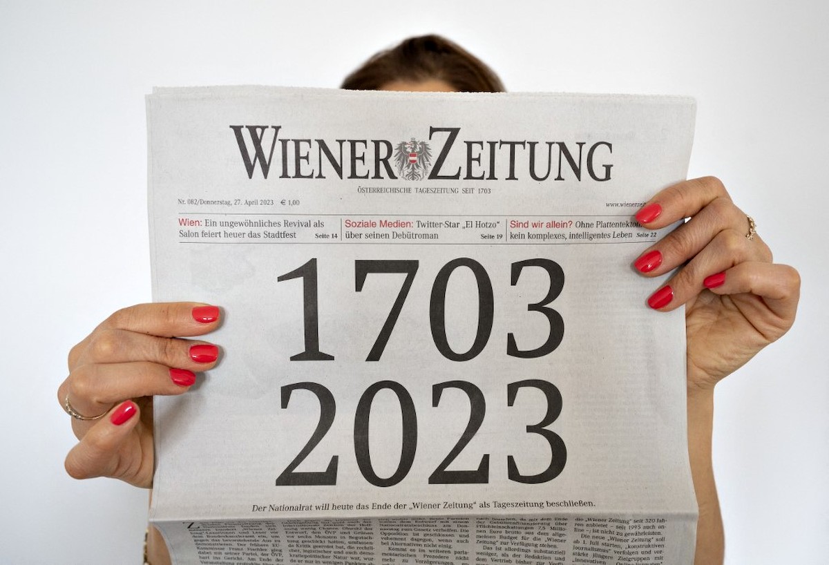 Pénteken jelent meg utoljára nyomtatásban a világ legrégibb még létező napilapja, az osztrák Wiener Zeitung, amely a jövőben csak online formában lesz elérhető, bár havonta egyszer nyomtatott kiadása is megjelenik majd. Fotó: Joe Klamar