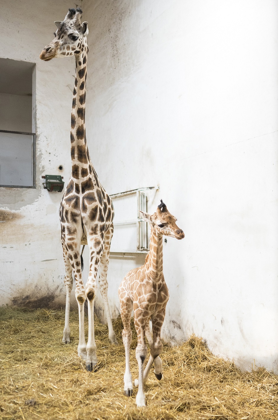 A gondozók aggódtak a zsiráfanya vemhessége miatt, mivel a nőstény az első borját nem nevelte, őt a szakembereknek kellett etetni az első hetekben. Szerencsére a második utódjánál már megérett az anyaságra, az első pillanattól kezdve gondoskodóan neveli. A 180 centiméter magas, hetven kilogramm súlyú borjú egyelőre anyatejjel táplálkozik, féléves korában kezd majd átszokni a szálas takarmányra.