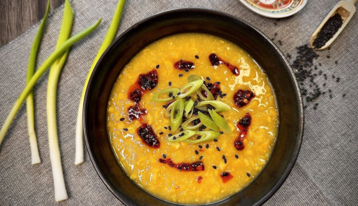 A recept a textúrák játékára épít: a roppanós szemek mellé selymes lé társul.