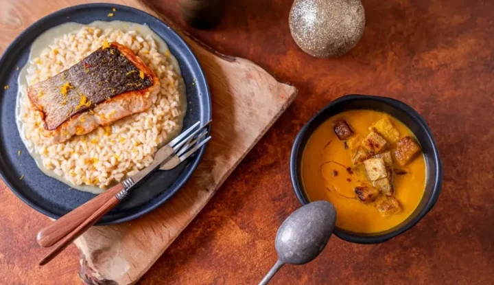A sült répa és a mandarin párosából készült leves melegséget hoz, a citrusos rizottó és a szaftos lazac pedig modern, mégis otthonos főételként koronázza meg az ünnepi vacsorát.