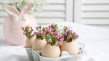10 húsvéti dekorációs ötlet, amivel gyorsan tavaszi hangulatot adsz a nappalinak és az asztalnak: friss virág, tojástartó kompozíció, koszorú, ágak és textíliák.
