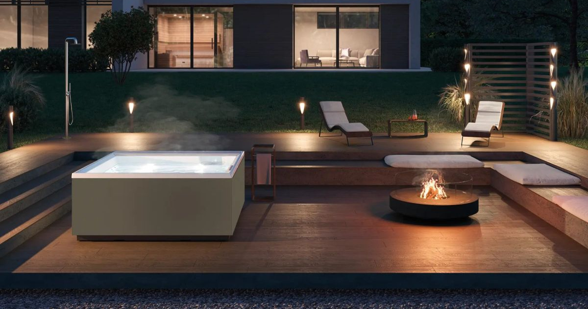 Masszázsmedence a teraszon – burkolatok, színek és lakberendezési trendek 2026-ban