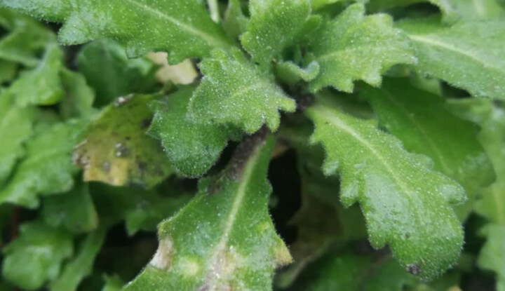 Ikravirág levelein fehér, apró foltok jelentek meg, sok levélen.