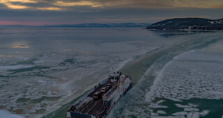 Hogy járhat a komp a befagyott Balatonon?