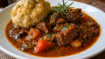 Hagyományos marhahúsgulyás zsemlegombóccal és hagymás alappal, ahogy otthon készül