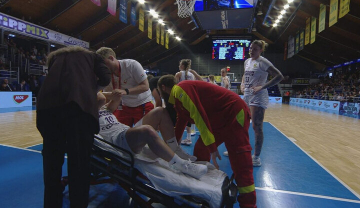 Alig két perc után csúnya sérüléssel indult a női kosárlabda Magyar Kupa Szekszárd-Sopron döntője: Papp Klaudia egy palánk alatti küzdelemben ütést kapott az arcára Carolina Rodrigues-től, majd nem tudott felállni.