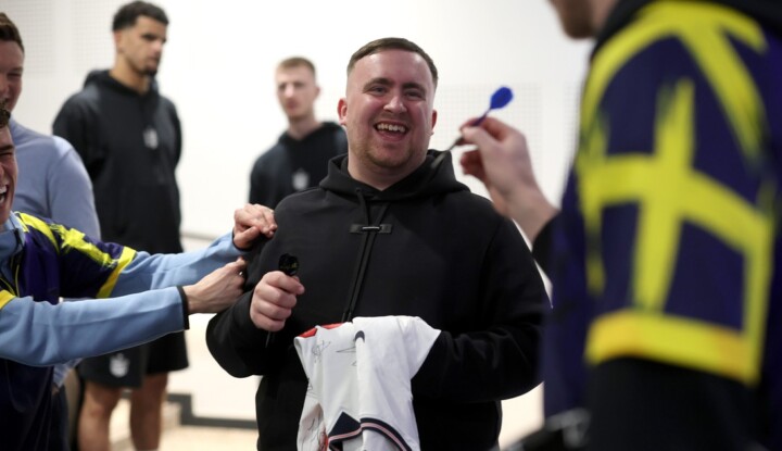 Luke Littler meglátogatta az angol labdarúgó-válogatottat, és a kétszeres világbajnok előtt Jude Bellinghamék házon belüli dartsversenyt rendeztek.