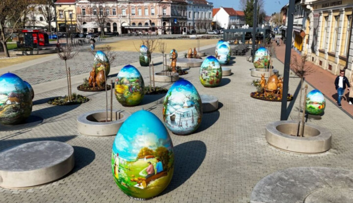 A húsvéti hosszú hétvége előtt látványos program lehet a horvát határ közelébe kiruccanni: több mint két méter magas, kézzel festett húsvéti tojásokat állítottak ki.