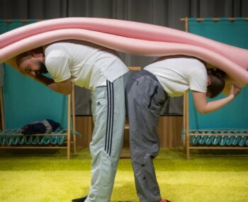 Egy pár vacsorázik egy elegáns étteremben. A pincérnő épp a szomszéd asztalnál szolgál fel, amikor észreveszi, hogy az épp vacsorázó hölgy lassan lecsúszik a széken, be az asztal alá.