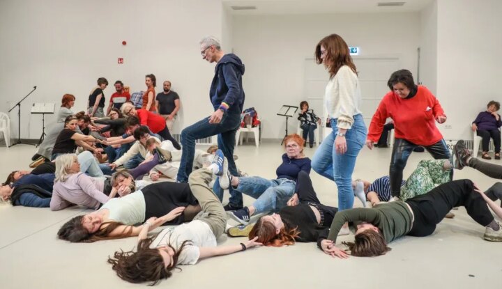 Az Örkény Színház Országkórusa nem klasszikus előadás, hanem egész estés közösségi kísérlet: installáció, fikciós rész és állampolgári performansz.