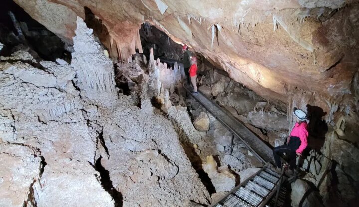 Csak ritkán lehet lemászni a cseppkőzászlók, cseppkőlécek, farkasfogas cseppkövek közé.