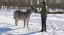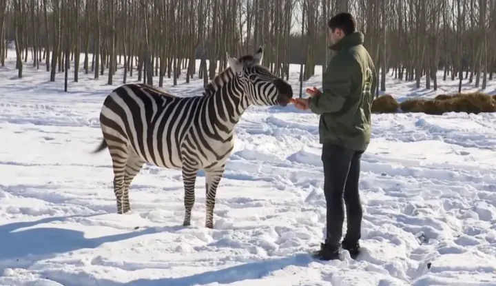 Elefánt és zebra élvezi a havat – így telik a tél Richter József szafariparkjában