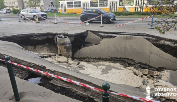 Április 20-án kora reggel csőtörés miatt beszakadt az úttest a budapesti Róbert Károly körúton.