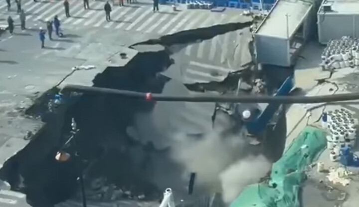 Döbbenetes pillanatokat rögzített egy térfigyelő kamera Sanghajban: egy hatalmas víznyelő hirtelen elnyelt egy egész útszakaszt.