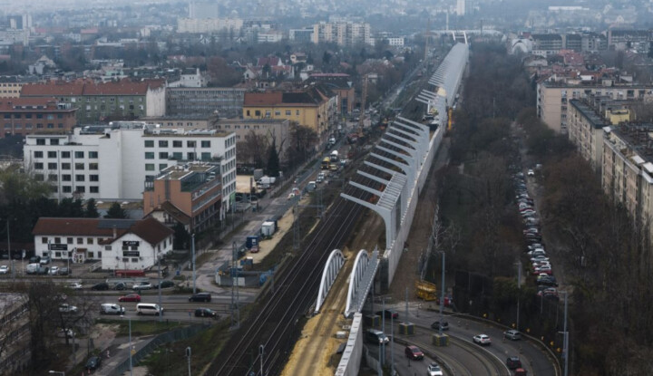 A Déli Körvasút projektben megvalósuló új hidat a közúti, villamos, gyalogos és kerékpáros forgalom megállítása nélkül illesztik a helyére.