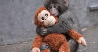 Punch a kis makákó plüss orángutánját elhagyva először érez makákó ölelést
