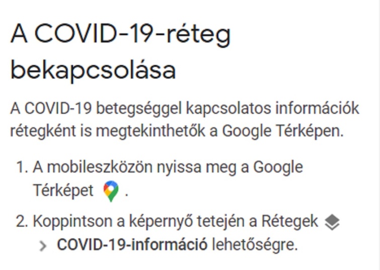 A színkódolt rendszer megmutatja az új koronavírusos esetek sűrűségét az adott területen, és azt is, hogy az esetek emelkedő vagy csökkenő tendenciát mutatnak-e. Az új információs lehetőség a Google Térképen már elérhető, mind a 220 ország számára látható, területtől függően ország, állam, tartomány, megye és város szintjén – írja a Cnet.
