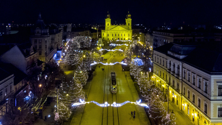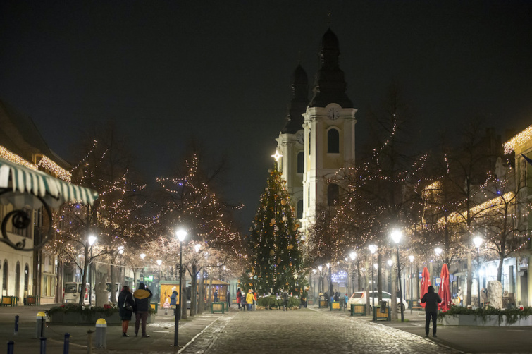Ünnepi díszkivilágítás Debrecen belvárosában advent első vasárnapján, 2020. november 29-én. MTI/Czeglédi Zsolt