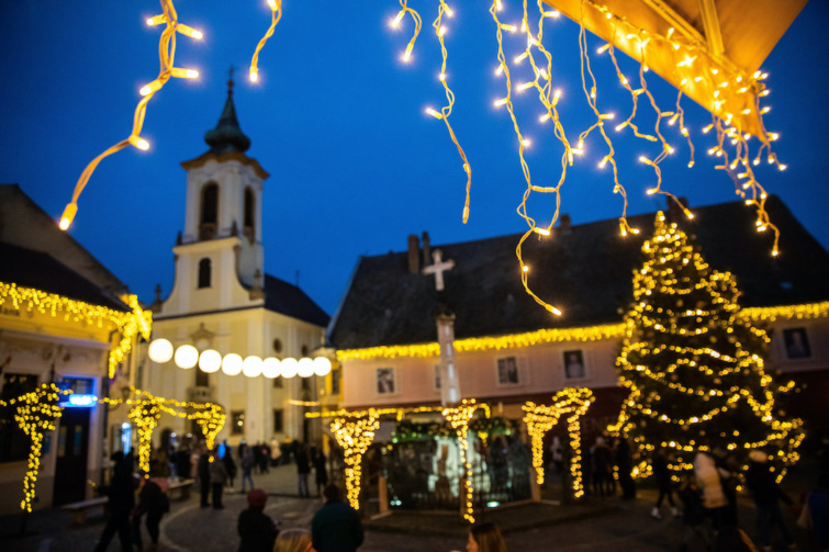 Ünnepi díszkivilágítás a szentendrei Fő téren advent első vasárnapján, 2020. november 29-én. MTI/Mohai Balázs
