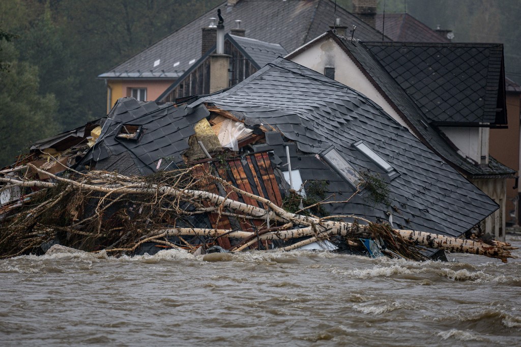 Rengeteg lakóépület került víz alá vagy rongálódott meg Csehországban az esőzések hatására. Fotó: Lukas Kabon/ AFP