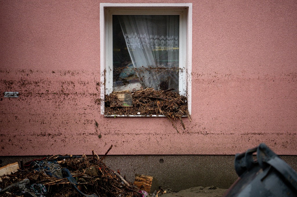 Jesenik, Csehország: Lakhatatlanná vált házak látképe az intenzív esőzések utáni áradás következményeként. Fotó: Lukas Kabon/AFP