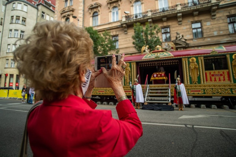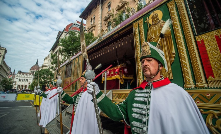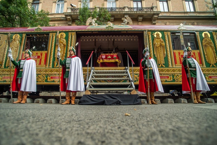 Csütörtökön kezdetét vette a Szent István-napi rendezvénysorozat, amelynek részeként az Alkotmány utcában már megtekinthető a rekonstruált Aranyvonat, az az ereklyeszállító kocsi, amelynek eredetije 1938-ban készült, hogy körbevihesse az országban a Szent Jobbot.