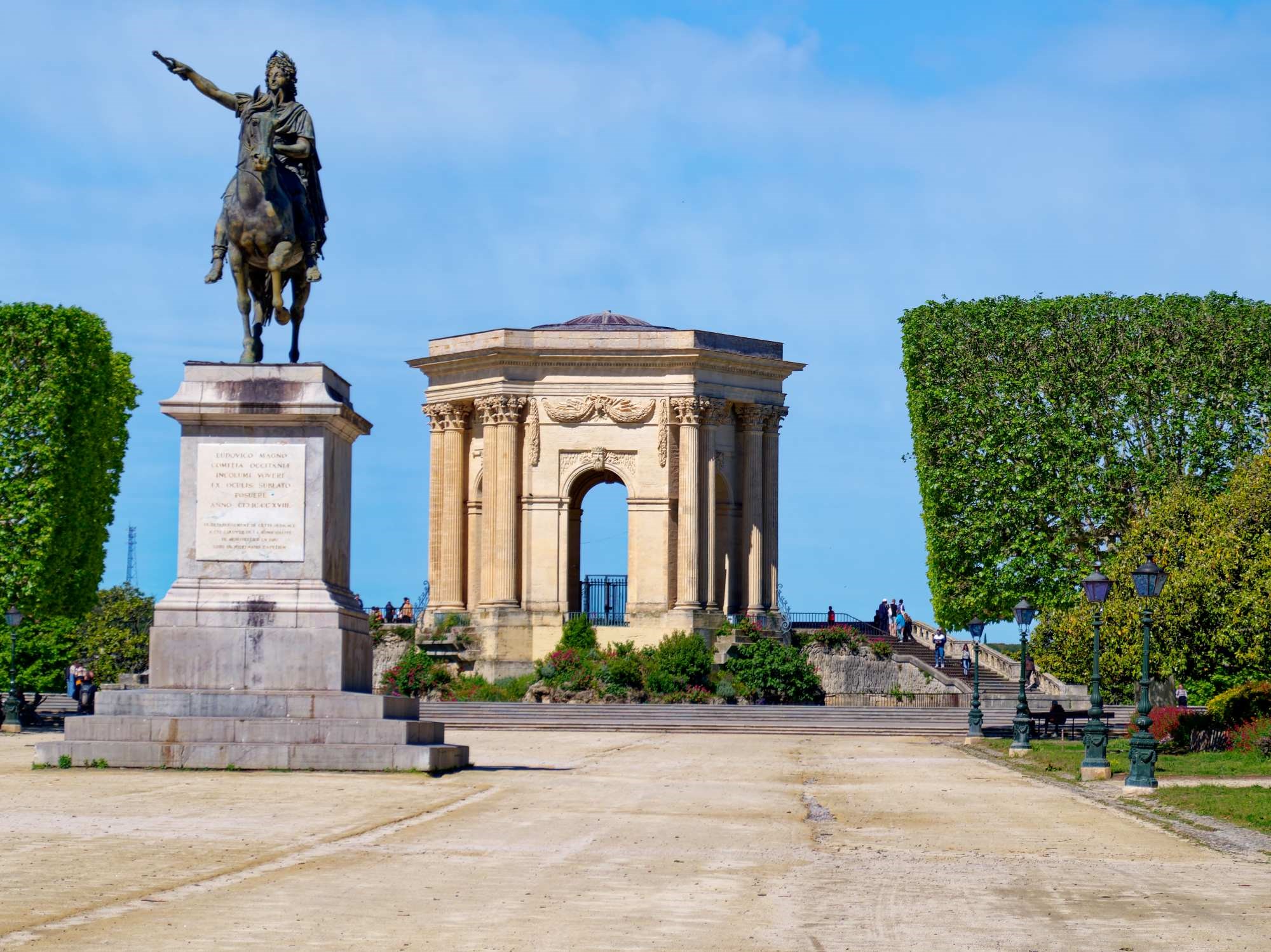 Párizs többször köszönt vissza Montpellier-ben, de az 1692-ben épített Diadalívtől kezdődő Peyrou királyi tér XIV. Lajos lovas szobrával, a víztoronnyal és a mögötte nyíló kilátással vitte el a pálmát. Érdemes megmászni a Diadalív 90 fokból álló lépcsőjét a panoráma miatt, de a téren átsétálni is kötelező.