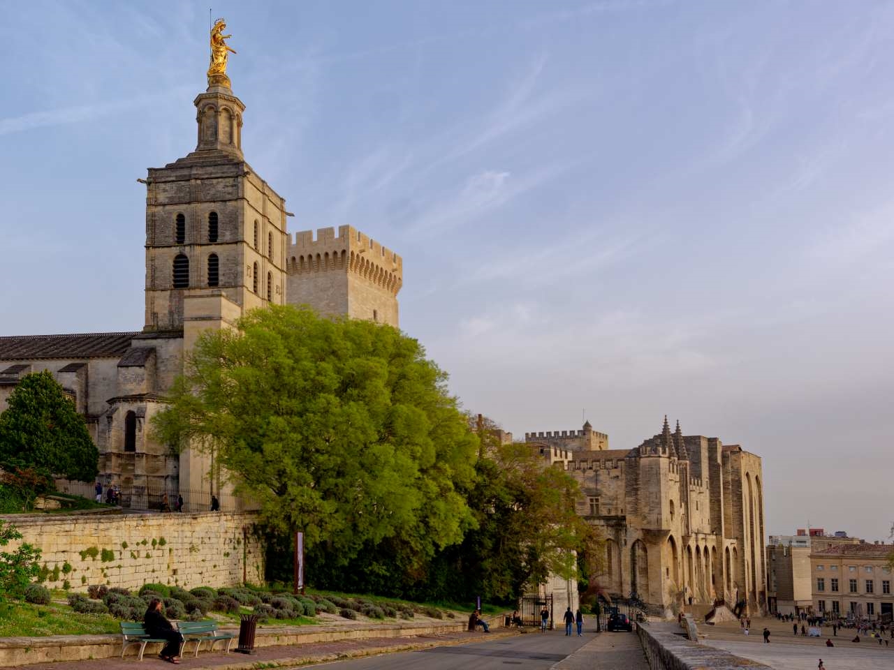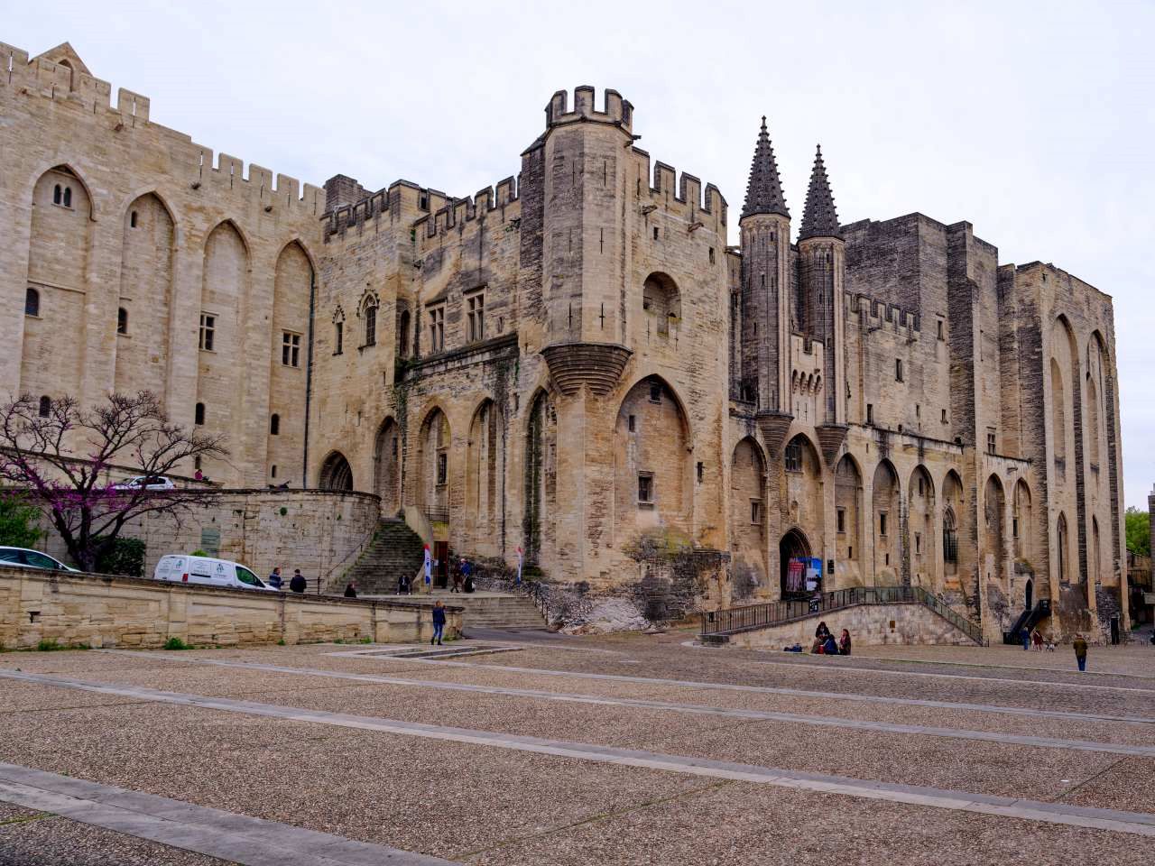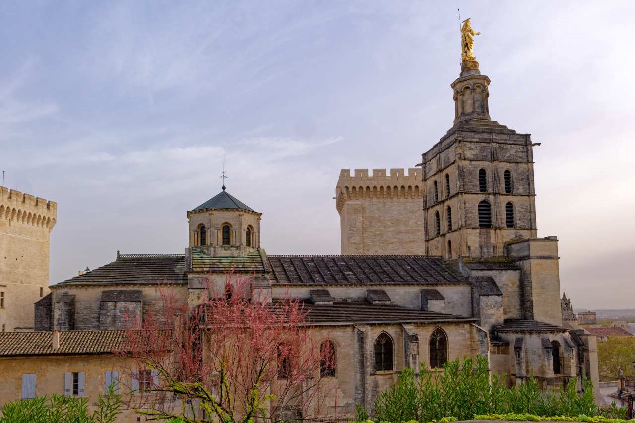 Kétségtelen, hogy a pápai palota uralja a város képét. Homokszínű erődként tornyosul a város közepén, alig pár méterre a folyótól. A sokszor bevált trükkel, miszerint korán reggel érdemes kezdeni egy város felfedezését, már reggel 7-kor a palota körüli utcákban sétálgattunk, és pont azt kaptuk, amire számítottam. A helyi lakosok munkába siettek, magabiztosan kanyarogtak a palotát övező sikátorok egyikéből a másikba, a kis kávézókból croissant és kávé illata csapott ki az utcára, és anélkül vehettük szemügyre az épületeket, hogy turisták hadát kellett volna kerülgetnünk.