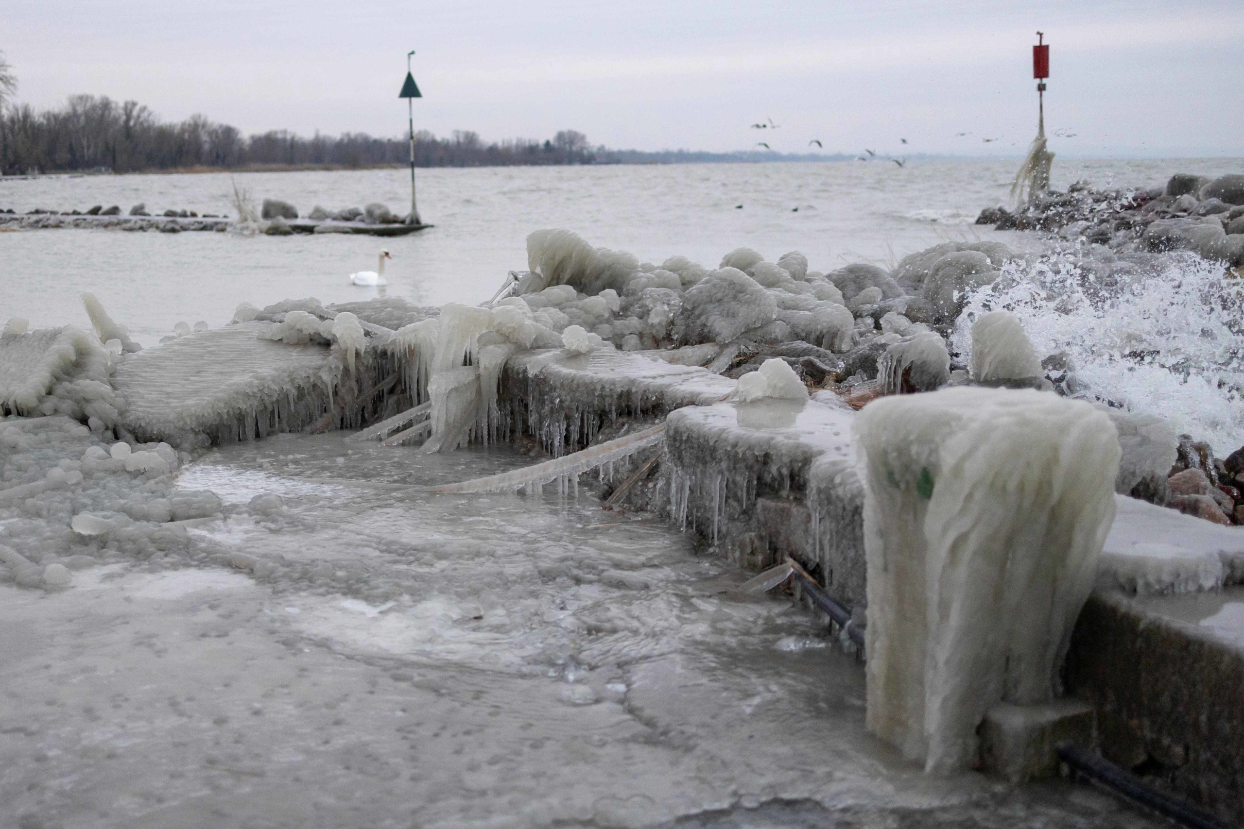 Jég borítja a Balaton partját a bélatelepi strandon Fotó: MTI/Varga György