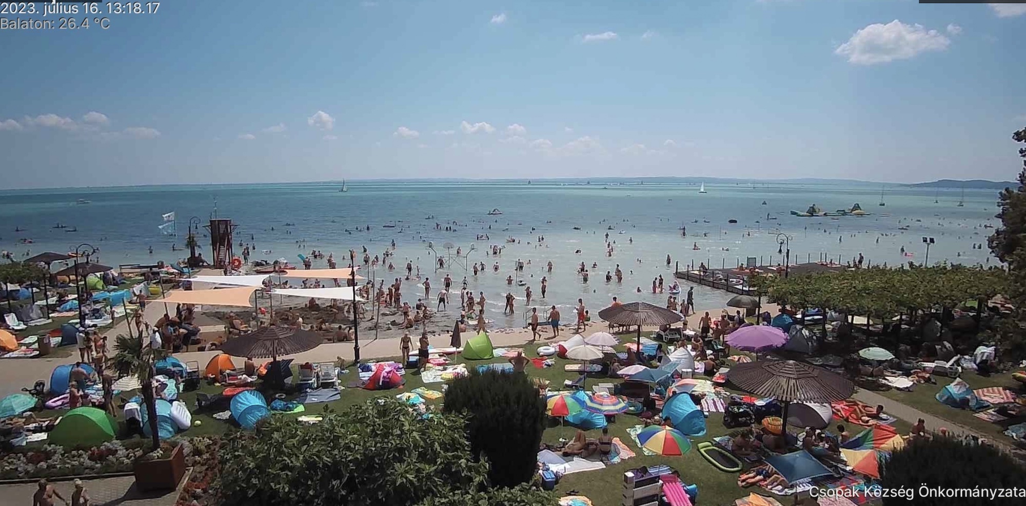 “Csopakon vagyunk szombat óta. A hétvégén annyian voltak, hogy egy tenyérnyi hely sem volt. Most is elég sok ember van a strandján” – írta egy olvasónk csütörtökön, alátámasztva ezzel a webkamerán látottakat is. Balatonlelléről és Balatonmáriafürdőről is azt írták, hogy sok a strandoló, ahogy Zamárdiból is hasonló tapasztalatokról számoltak be.