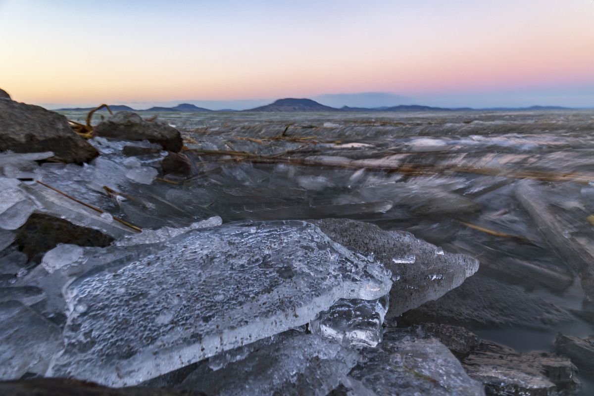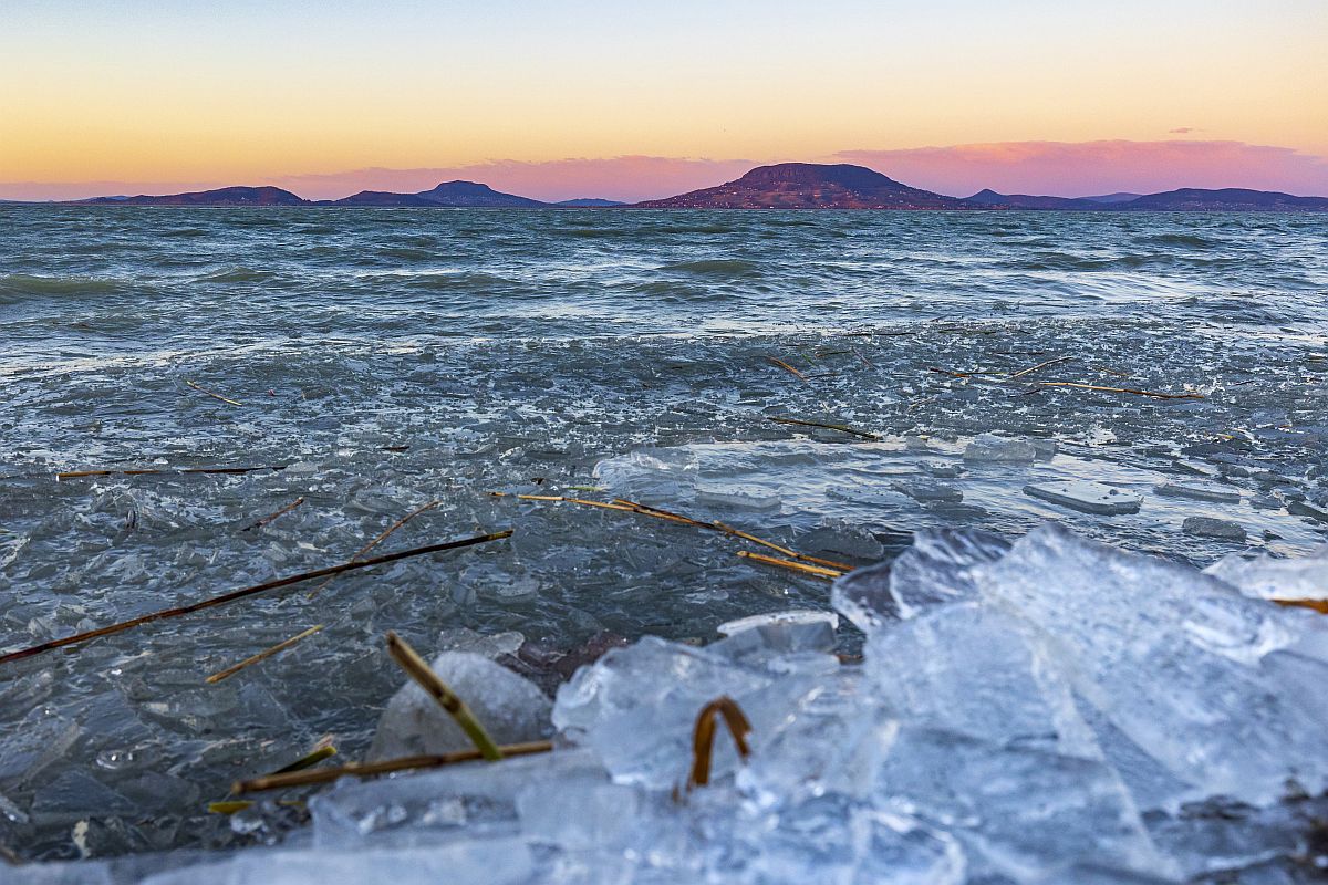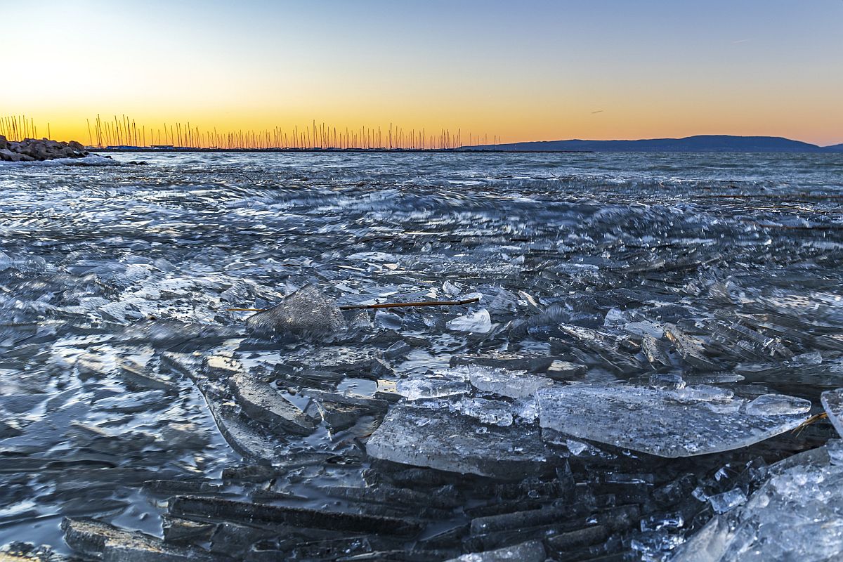 A szél elsősorban a déli part mentén hatalmas hullámokat keltett, és darabokra törte a múlt héten kialakult vékony jégréteget, amit aztán a partra, illetve a part közelébe sodort.