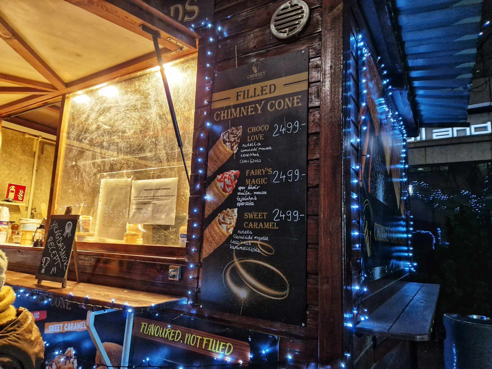 Adventi forgatag a Vároháza téren- a kürtős kalácsok 2900 forintba kerülnek.