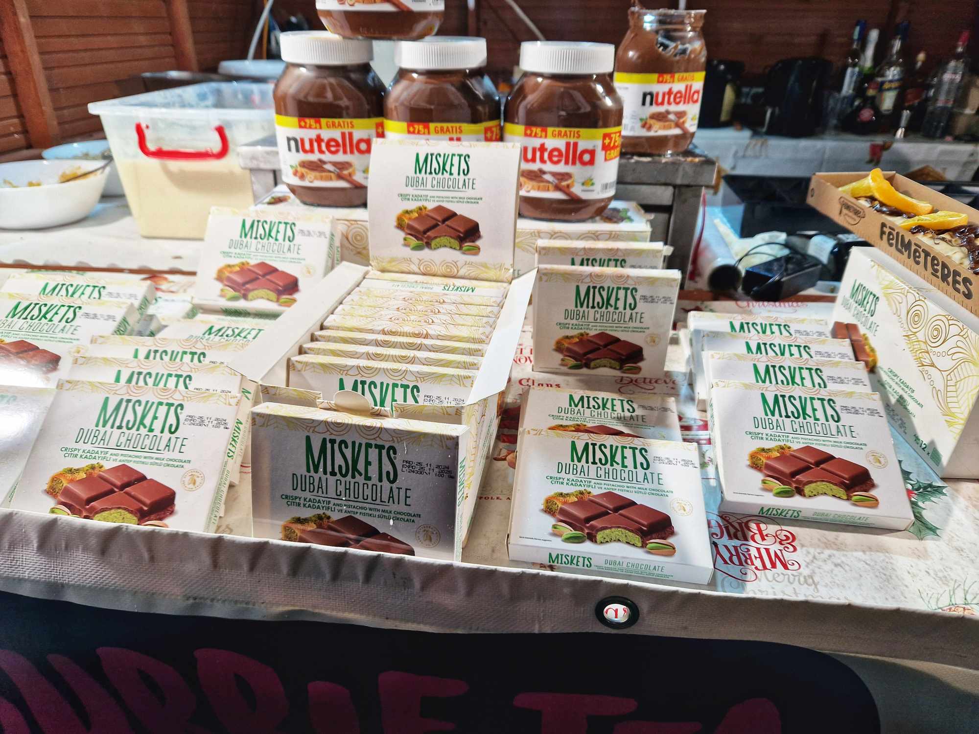 Az Allee mellett találtunk még egy különlegességet, aminek idén valószínűleg nagyon sokan örülnek majd: az óriáspalacsintás standnál nem csak dubai csoki ízű palacsintát, de dubai csokit is árulnak, 3500 forintért a 100 grammos kiszerelést.