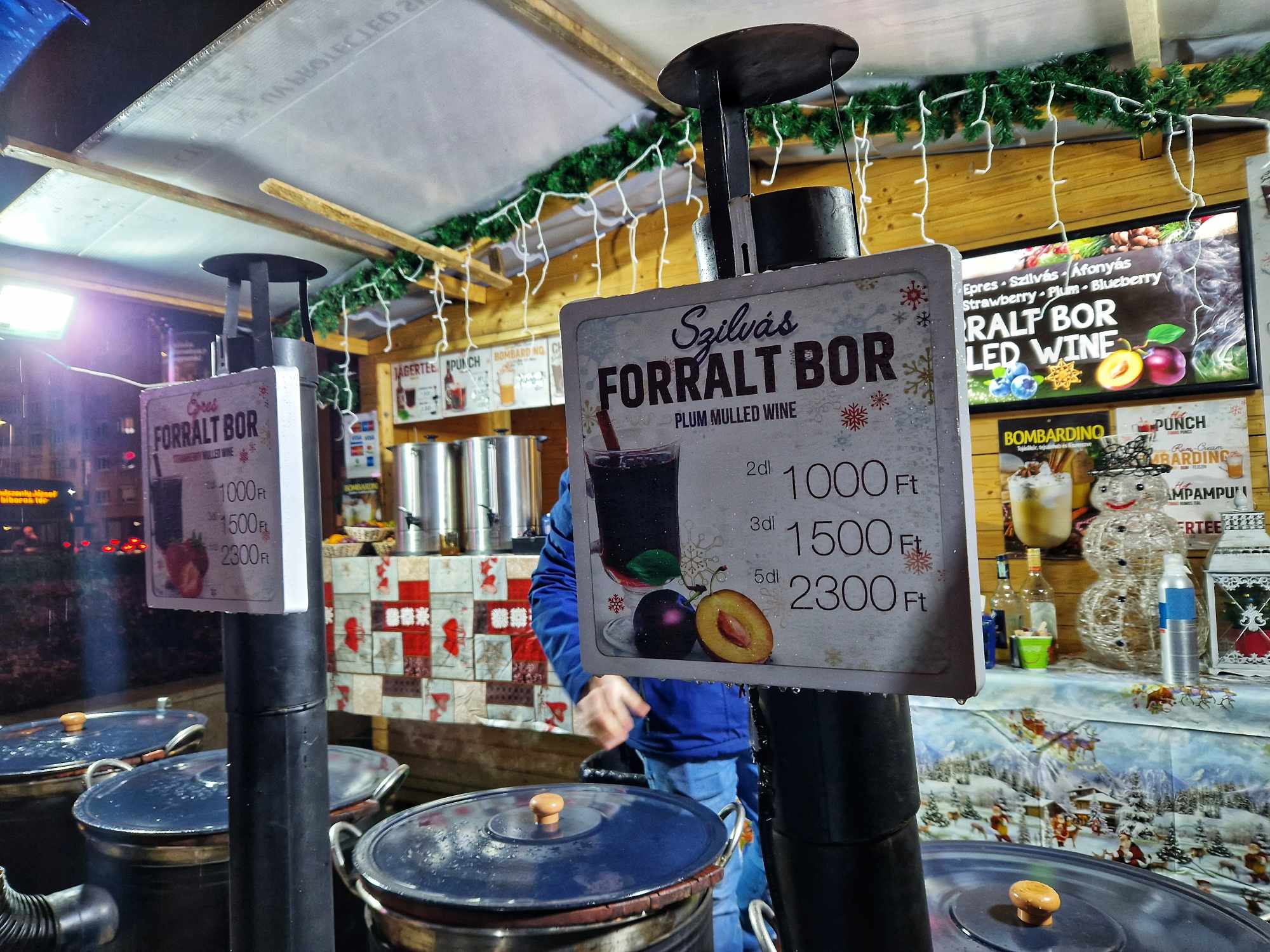 A szilvás forral bor ára decinként 500 forint, de ha 5 decit kérünk, csak 2300 forintot kell fizetnünk.
