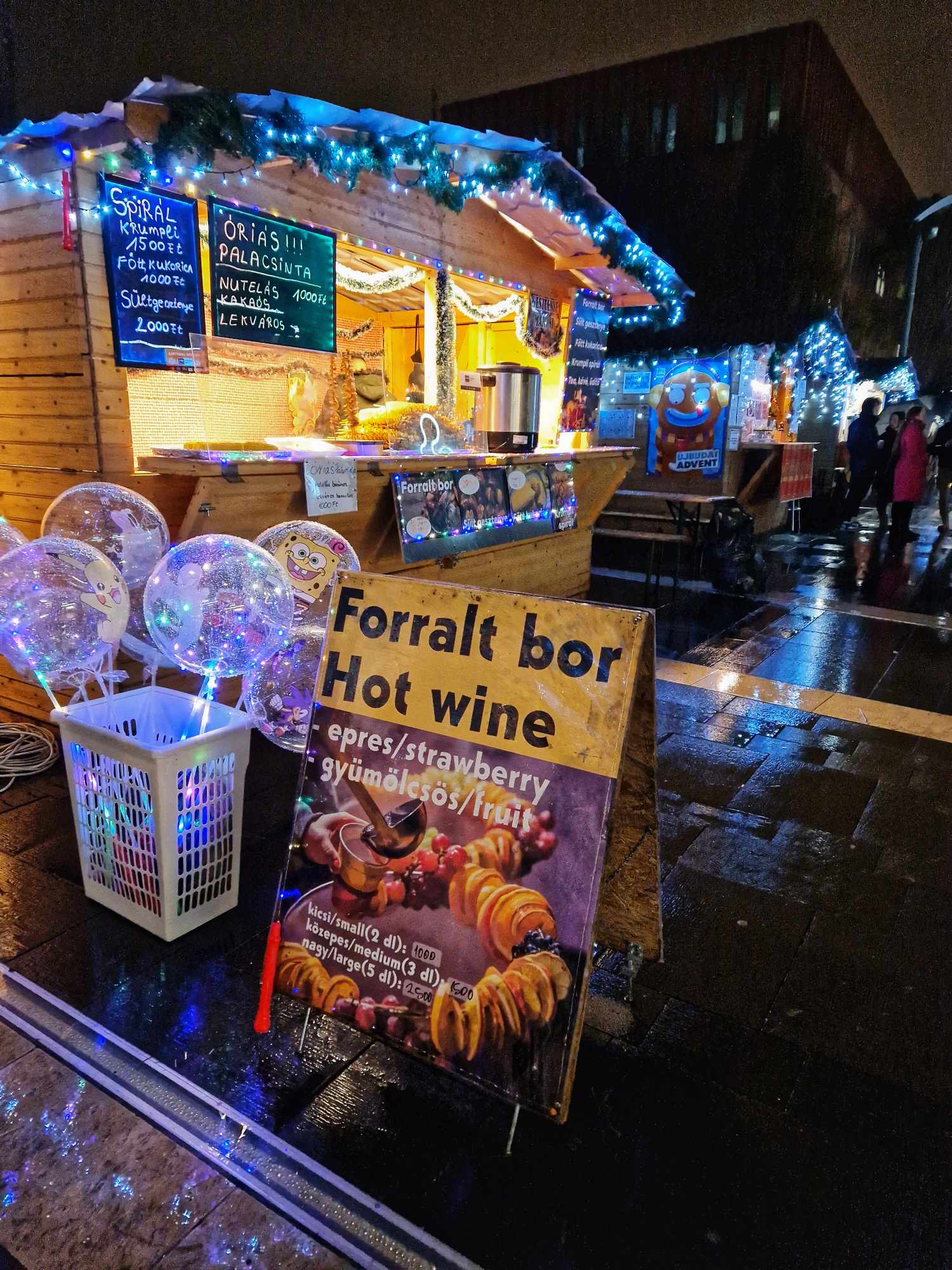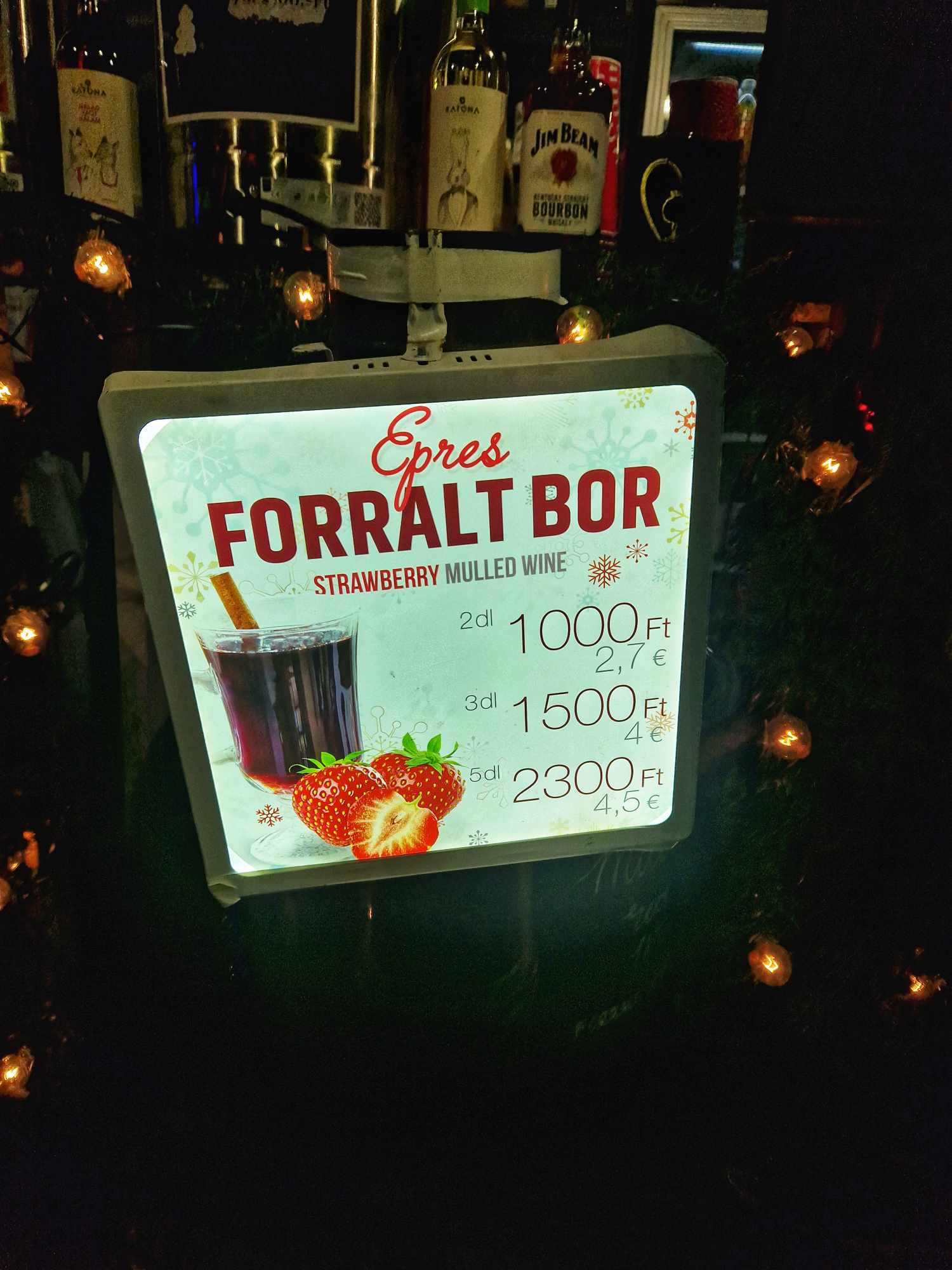 Karácsonyi vásár a Corvin sétányon - Az epres forralt bor két decije 1000, 3 decije 1500, 5 decije pedig 2500 forintba kerül.