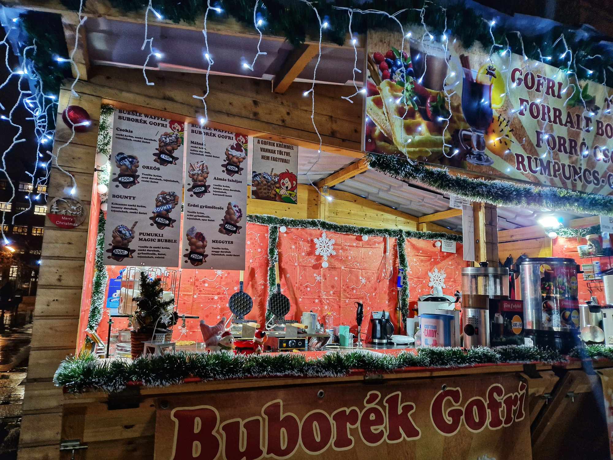A kalácsnál kevésbé hagyományos, ám szintén nagyon népszerű vásári édesség az Allee melletti vásárban kapható Buborék Gofri, amiből almás-fahéja, oreós, de Pumukli kedvence ízesítésű is van, 2500-3000 forintos áron. A tulajdonos szerint az idei szezon az eddigieknél gyengébben indul, még annak ellenére is, hogy neki visszajáró vendégei is vannak. Az ehhez hasonló kisebb vásárokat jellemzően magyarok látogatják, de külföldi egyetemisták is szoktak nála vásárolni. “Én egyébként tavaly is ugyanennyiért árultam, nem emeltem árat. Az újbudai árakat össze sem lehet hasonlítani a Vörösmarty téri vásári áraival, azok irreálisak” – tette hozzá.