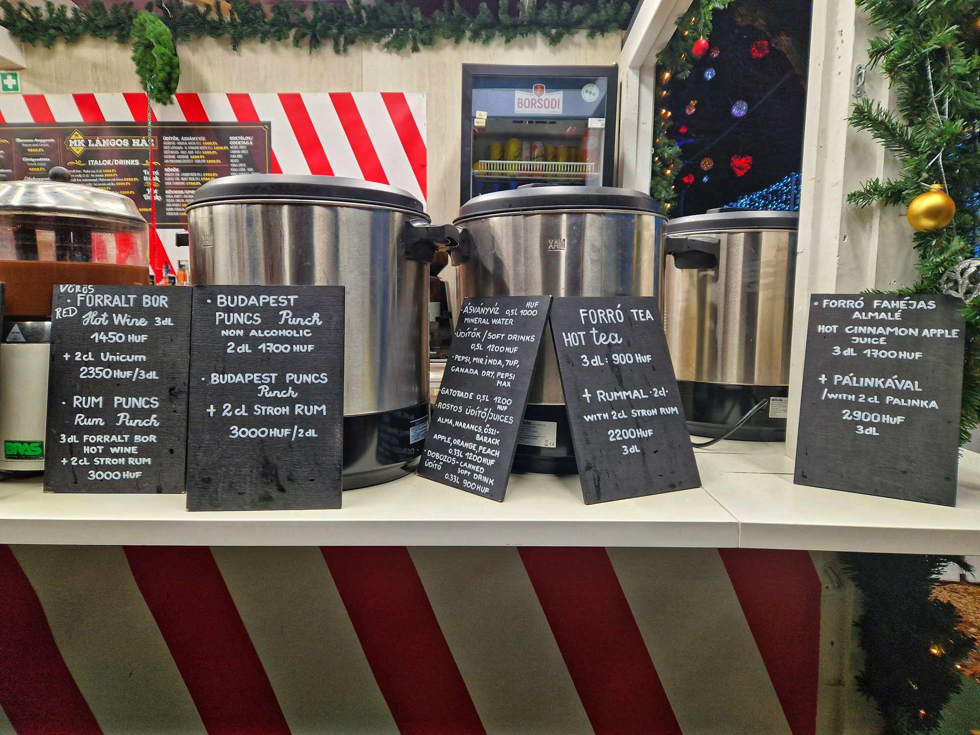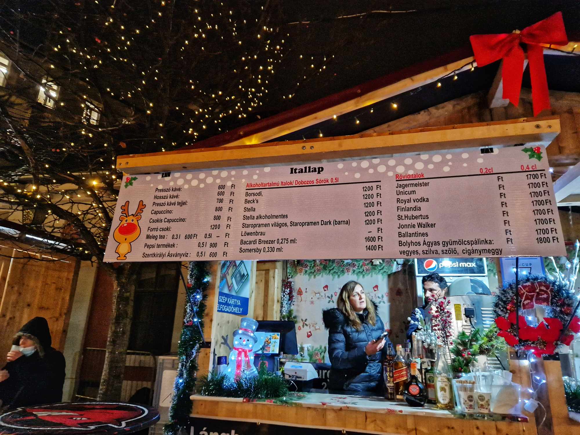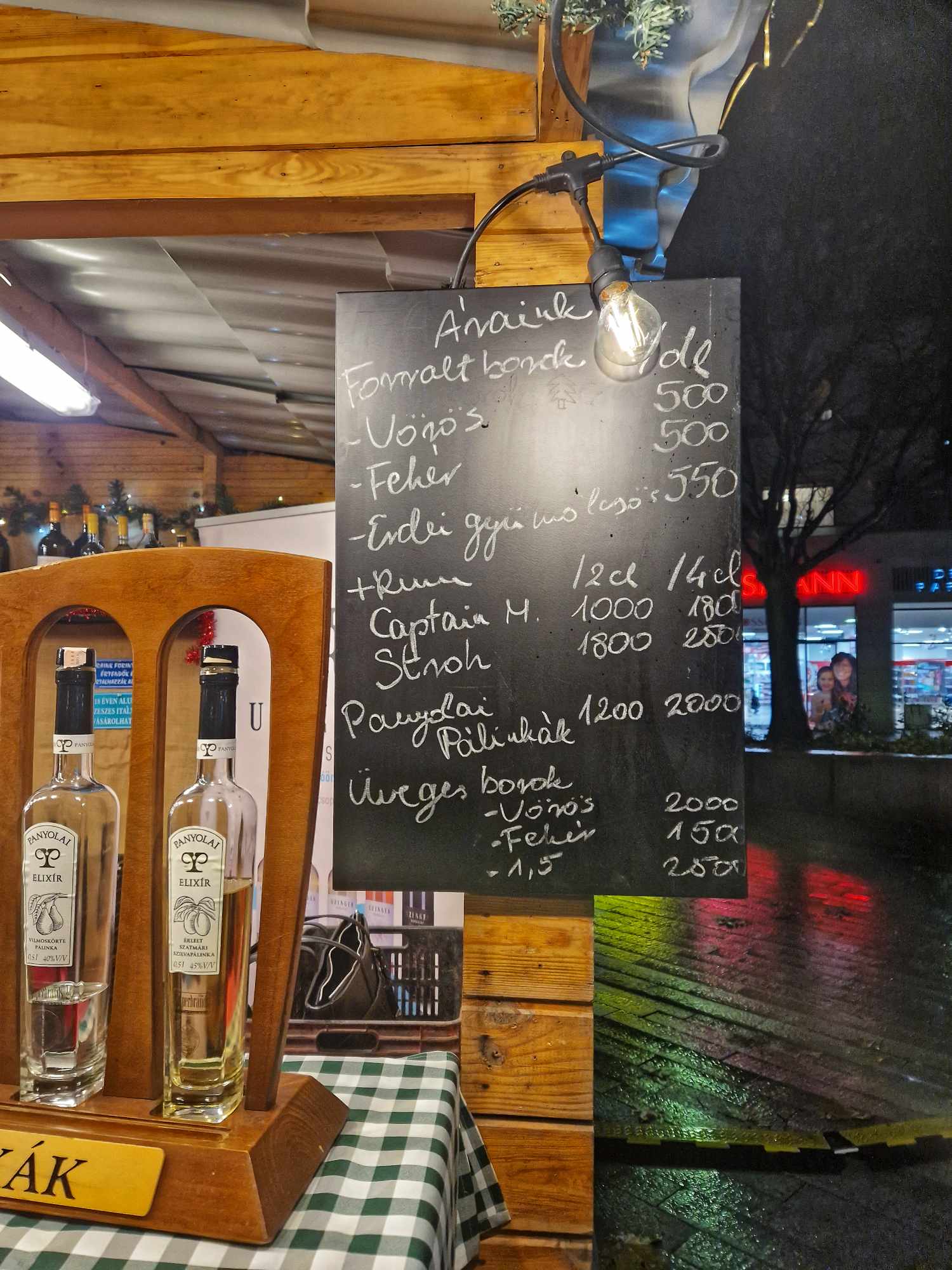 Karácsonyi vásár a Corvin sétányon - Az erdei gyümölcsös bor ára decinként 550 forint a Stroh rum pedig 4 centenként 2500 forintba kerül