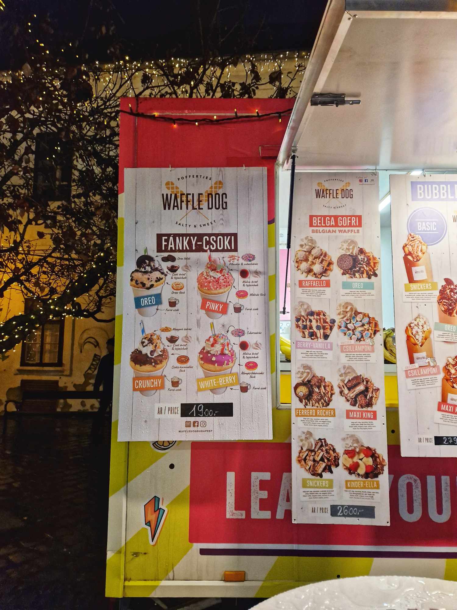 Advent Óbudán - A waffle dogok ára egységesen 1900 forint.