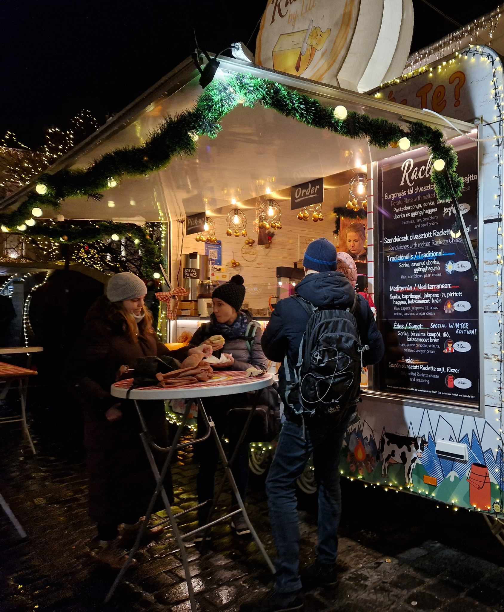 Advent Óbudán- Olvasztott Raclette sajtos szendvicseket 3500 - 3900 forintos áron vásárolhatunk.