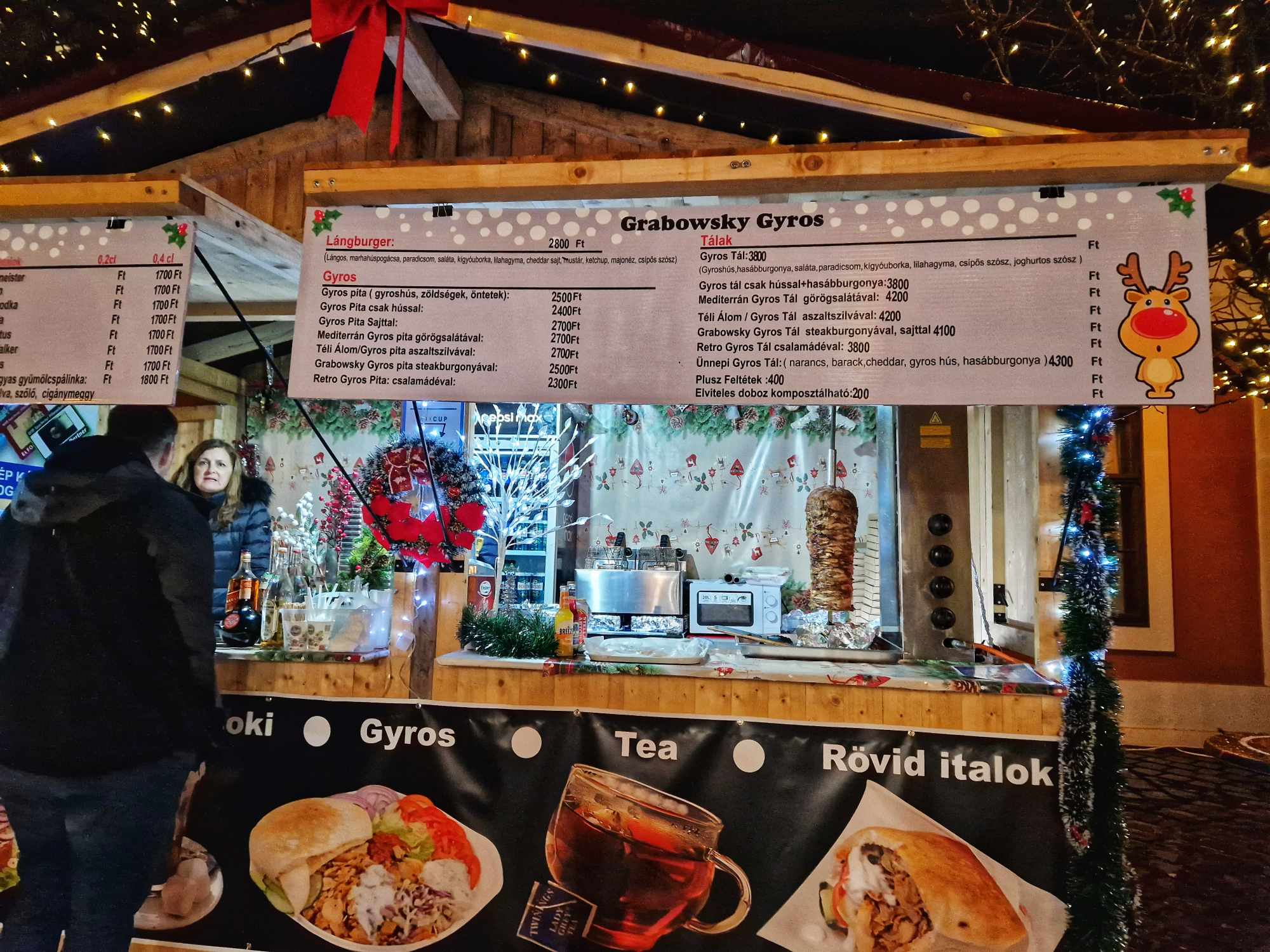 Advent Óbudán - A Gyros Pita ára 2500 ft, de a Retro Gyros Pita csalamádéval csak 2300 ft-ba kerül. Ha steakburgonyát is kérünk hozzá, 200 forinttal kell többet fizetnünk.