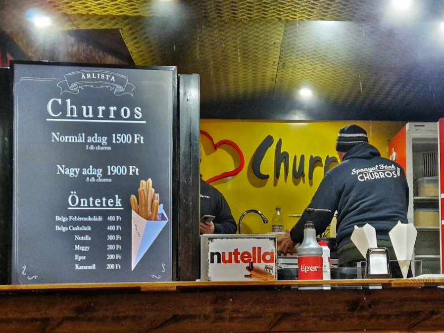 Advent Óbudán - A normál adag churros 1500, a nagy adag pedig 1900 forintba kerül, az öntetekért további 200-400 forintot kell fizetni.