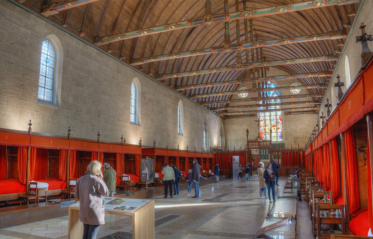 A színes, mázas cseréppel borított épület már külsőre is megnyugtatóan hat az emberre, de bent a hatalmas kórteremben, ahol az ágyak úgy állnak, hogy a betegek azokból láthassák a terem végében található oltárt, már nemcsak esztétikailag, hanem lelkileg is megérinti a belépőt. Az ispotály 1443-as megalapításától egészen 1971-ig állt és ellátta a környék betegeit.