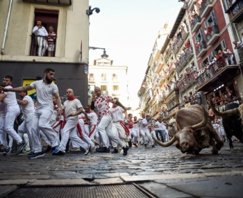 Újabb hét ember sérült meg a hírhedt pamplonai bikafuttatáson