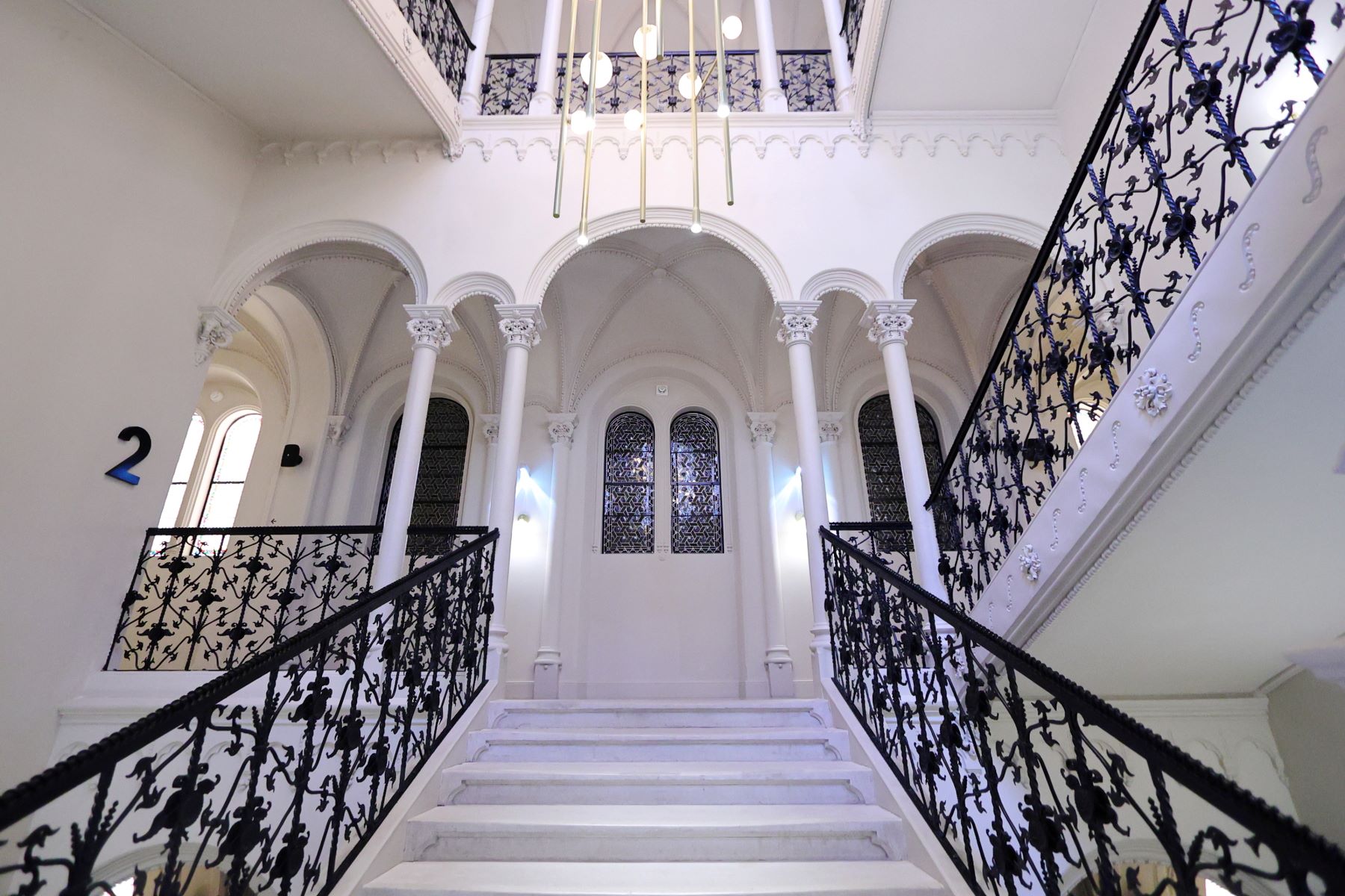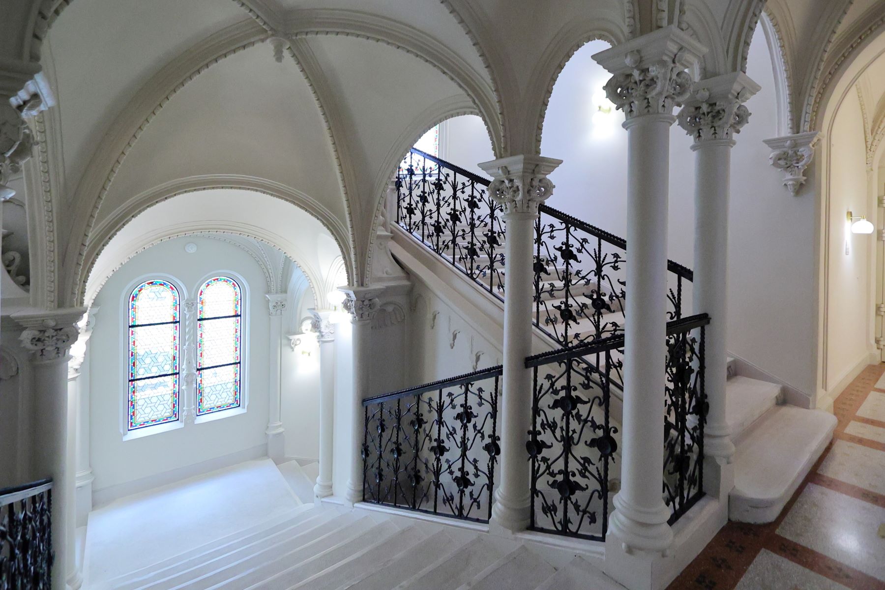 A Drechsler-palota csodálatos főlépcsőháza oldalról.